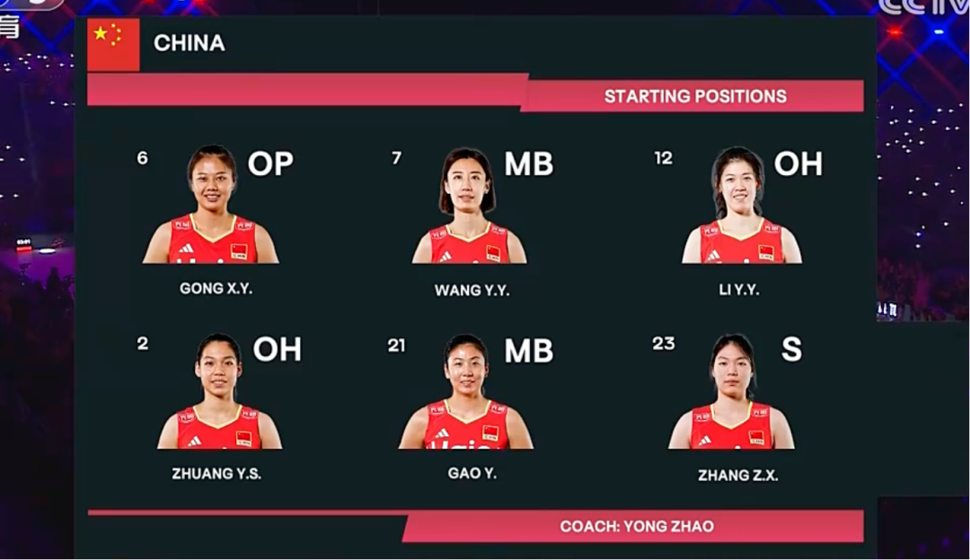 首战对阵墨西哥女排,中国女排以3:1逆转击败对手,取得开门红。这给平均年龄刚过23岁、8人首次参加世锦赛的年轻队伍增添了不少信心。为了争夺小组头名,此役中国女排的目标就是取得连胜。与上一场相比首发方面,自由人改为倪非凡,其他位置上不变,分别是:主攻李盈莹、庄宇珊,副攻王媛媛、高意,接应龚翔宇、和二传张籽萱。